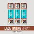 Three (3) Lace Tinting Sprays in Dark Brown: Quick-drying, humidity-resistant, long-lasting formula that blends lace with a natural finish, offers buildable coverage without residue, and washes out easily with shampoo.